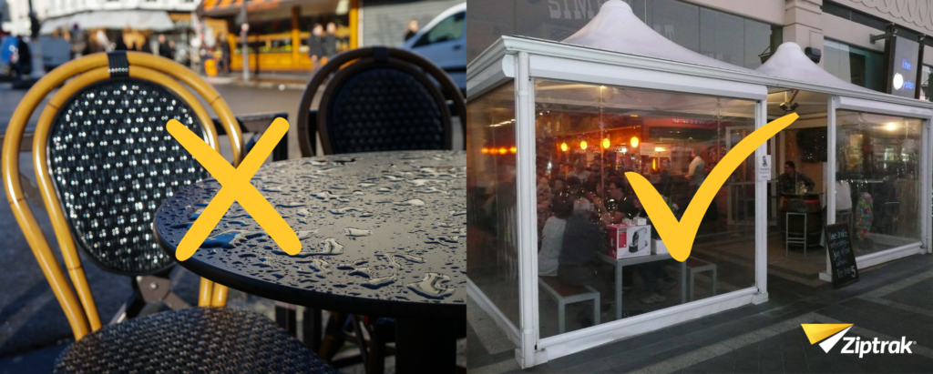 Investing in Ziptrak® Clear PVC Blinds isn’t just about the present; it’s about expanding your capacity, securing your café’s future prosperity. Think of it as an investment that yields dividends in numerous ways: increased capacity year-round, reduced energy bills, decreased furniture damage due to UV and weather, and an unparalleled customer experience that keeps your customers returning for more, no matter what the weather is doing that day. Ziptrak® Clear PVC Blinds allow you to increase your seating capacity – no squeezing tables away from the elements; customers can enjoy your venue right up to the edges. Dawn or sunset too brisk or windy for patrons? Not anymore, with outdoor dining spaces that change to suit the varying weather throughout the day.