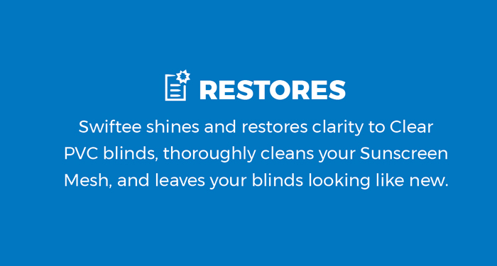 Swiftee® is a powerful and unique concentrated formula that makes cleaning your outdoor blinds easy! Its quick and simple to achieve a sparkling finish that leave your blinds looking like new.