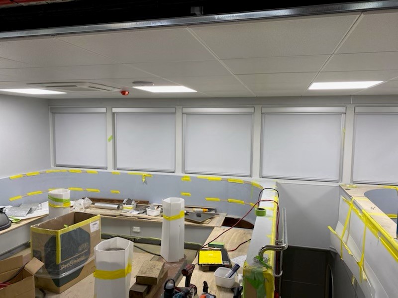 Check out the images of Ziptrak ® Interior Blinds being installed while the vessel was constructed by Norman R. Wright & Sons.